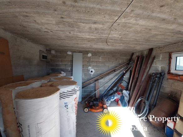 Kellari koostuu yhdestä suuresta autotallin ovilla varustetusta huoneesta, joka soveltuu varastotilaksi tai mahdolliseksi työpajatilaksi, sekä lisävarasto. Kiinteistöön kuuluu myös autotalli ja tilava puutarha niityllä, joka tarjoaa runsaasti mahdollisuuksia ulkoiluun tai maisemointiin.